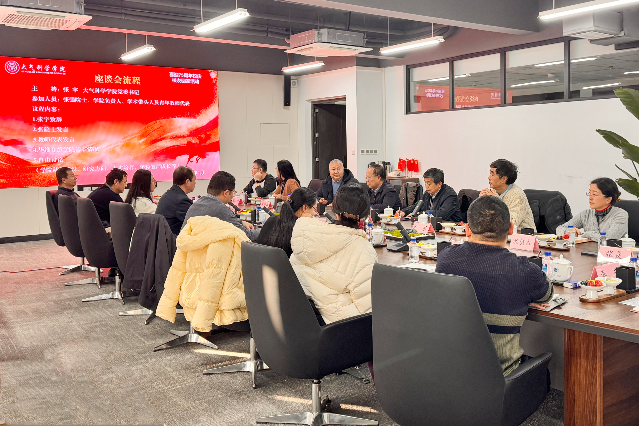 学术报告结束后,张强院士来到大气科学学院,与学院负责人、学术带头人及青年教师代表进行了深入座谈。双方围绕学科建设、研究方向聚焦、人才培养机制及青年教师职业发展等议题展开了热烈讨论。张强院士对母校及学院的科研发展提出了诸多建设性意见,并表达了未来进一步加强交流与合作的意愿。