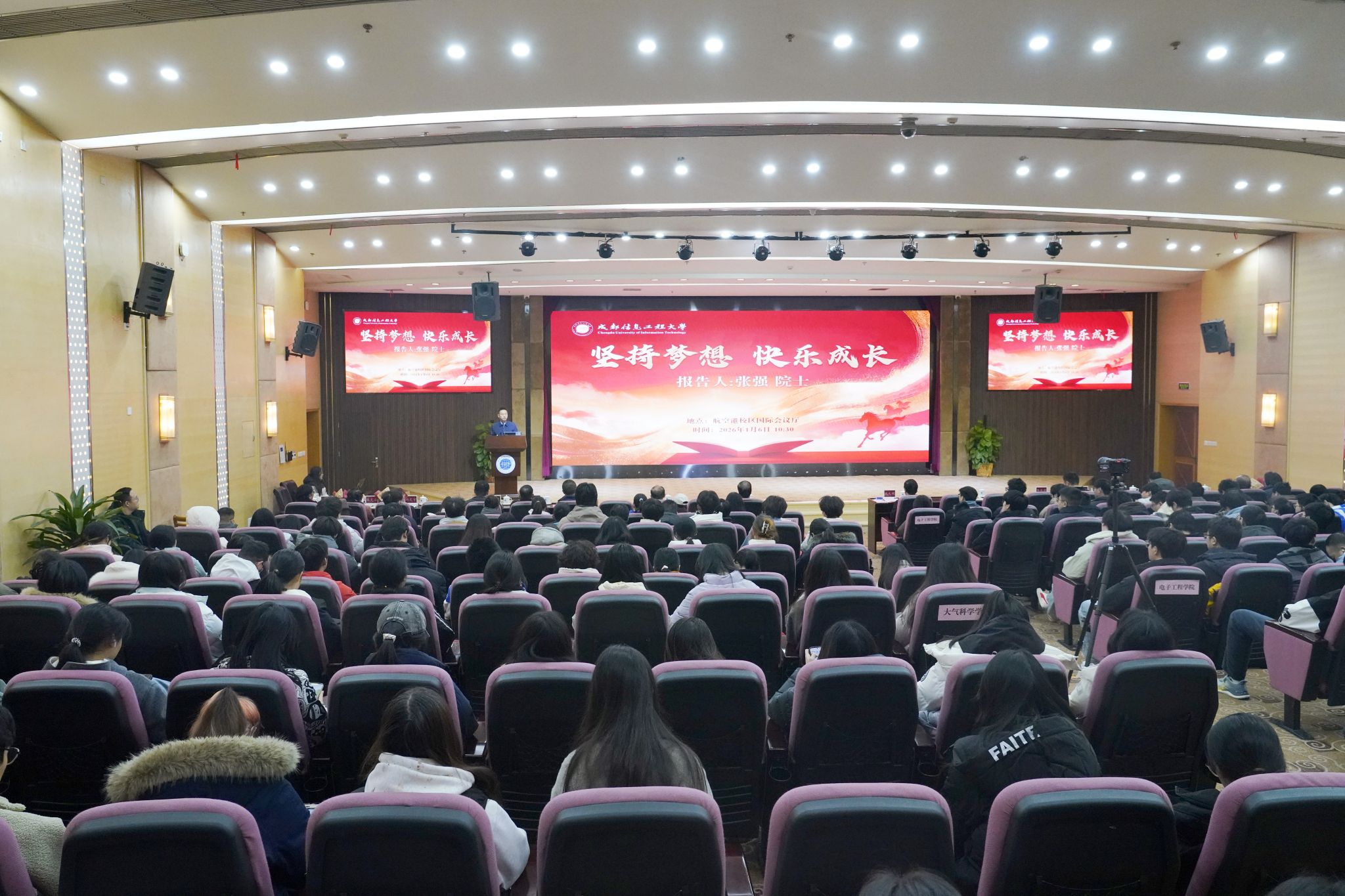 张强院士在学校国际会议厅作了题为“坚持梦想 快乐成长”的励志报告。学校党委书记沈火明、校长何建新出席,部分老教师代表,党政办公室、校友办公室、大气科学学院、电子工程学院、光电工程学院等师生代表共同聆听报告。报告会由学校副校长陈权亮主持。