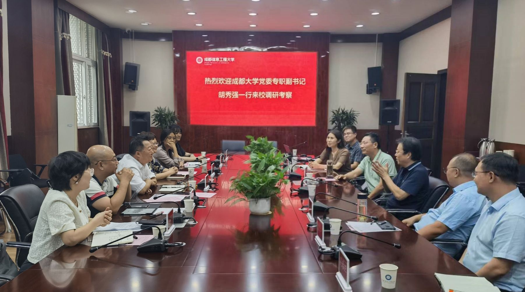 【本网讯】9月14日下午,成都大学党委专职副书记胡秀强一行到我校四川省网信人才培养基地考察调研。我校党委书记周激流、副书记马洪江出席会议。会议由学校党委常委、宣传部部长张小红主持。