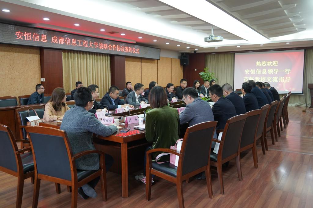 【本网讯】10月14日上午,学校与杭州安恒信息技术股份有限公司(以下简称安恒信息)签约仪式在行政楼第七会议室举行,会议由舒红平主持。