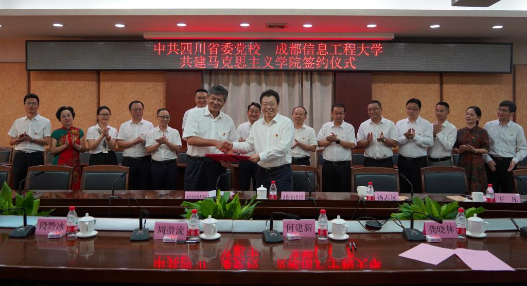 【本网讯】9月30日下午,学校与中共四川省委党校共建马克思主义学院签约仪式在航空港校区第七会议室举行。副校长何建新主持仪式。