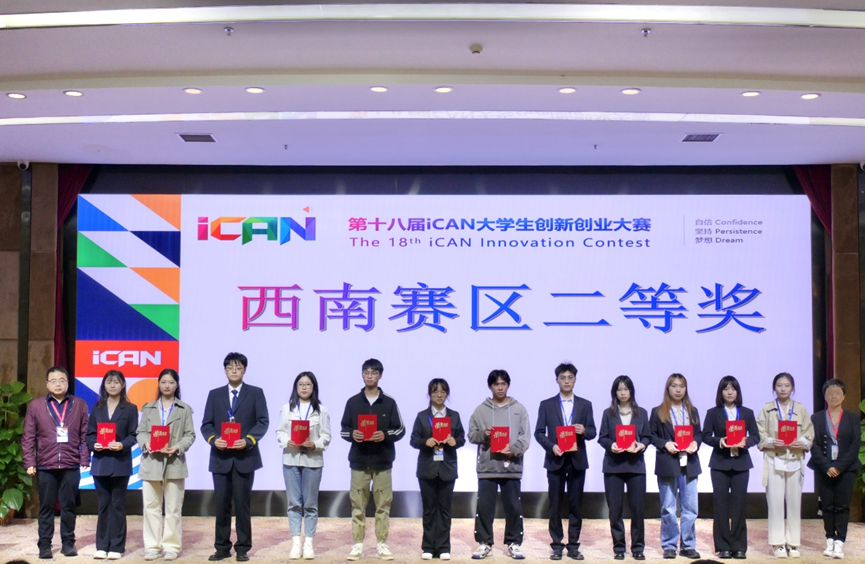 经过现场答辩和专家评议,本次iCAN西南赛区选拔赛最终评选出一等奖队伍41支、二等奖队伍63支。我校学子获得一等奖4项、二等奖4项,电子工程学院余小敏、颜廷昱获优秀指导老师奖。参会领导和嘉宾为获奖选手和教师颁奖。