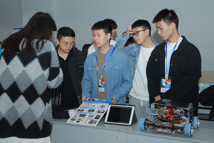 开幕式结束后,参赛选手在第四教学楼进行了现场答辩,评委们仔细听取了参赛队伍的作品汇报,并针对参赛作品的不足之处提出了建设性意见,为选手们进一步完善项目提供了宝贵的思路和方向。