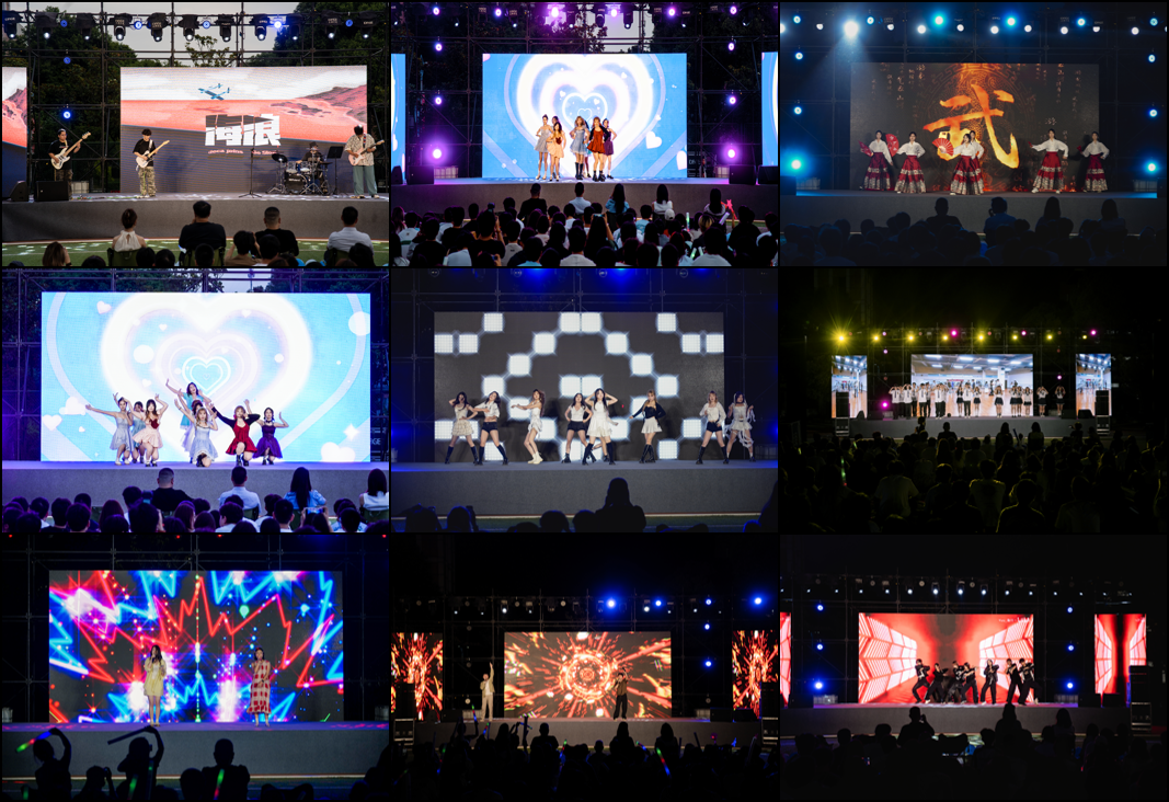 一场持续两小时的草坪音乐节在众人期待中拉开帷幕。音乐节以四大主题篇章精彩呈现,22个精心编排的师生节目轮番登场,从传统民乐到现代歌舞,从深情独唱到活力群演,多元艺术形式交相辉映,为现场观众奉上了一场视听盛宴。活动特别设置的三轮惊喜抽奖和全场师生大合唱环节,将现场气氛不断推向高潮,田径场上空回荡着经久不息的欢声笑语。