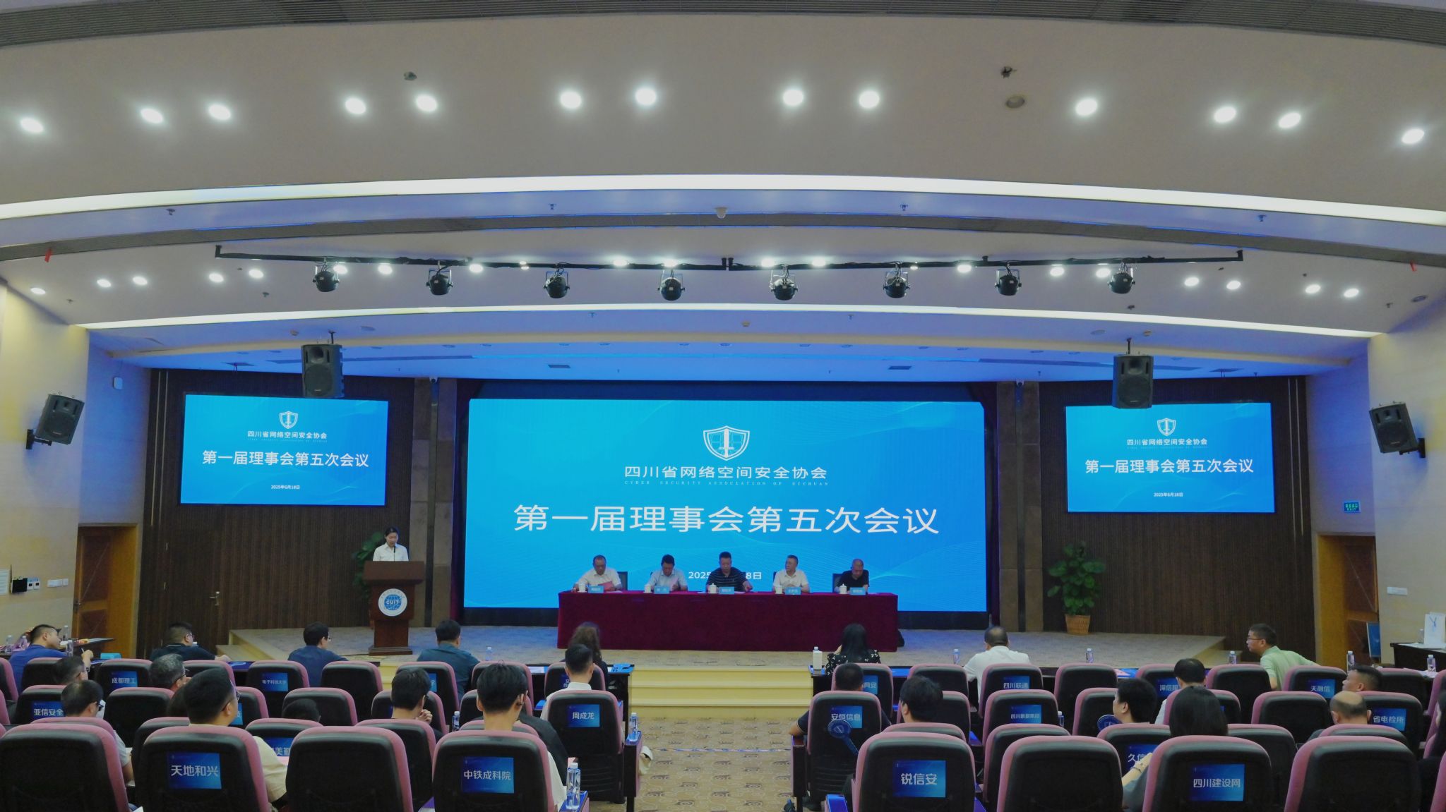 【本网讯】6月18日下午,四川省网络空间安全协会第一届理事会第五次会议在理事长单位lejing乐竞·(中国)官方网站顺利召开。协会理事长舒红平、四川省委网信办总工程师何力、协会党委书记王伊洛、协会监事郑洪烈、协会秘书长周益民、协会执行秘书长周成龙出席会议。新晋理事会代表及全体理事会成员代表参加会议。大会由协会秘书处彭春瑶主持。
