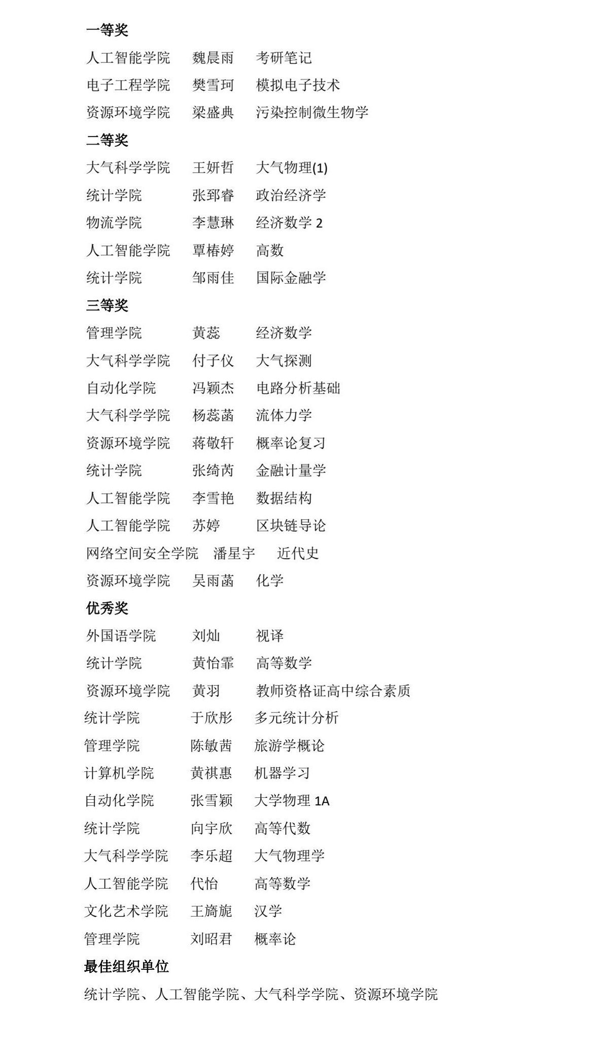lejing乐竞·(中国)官方网站2024-2025学年第2学期学风建设月“第二课堂”精品活动之最美笔记大赛获奖名单