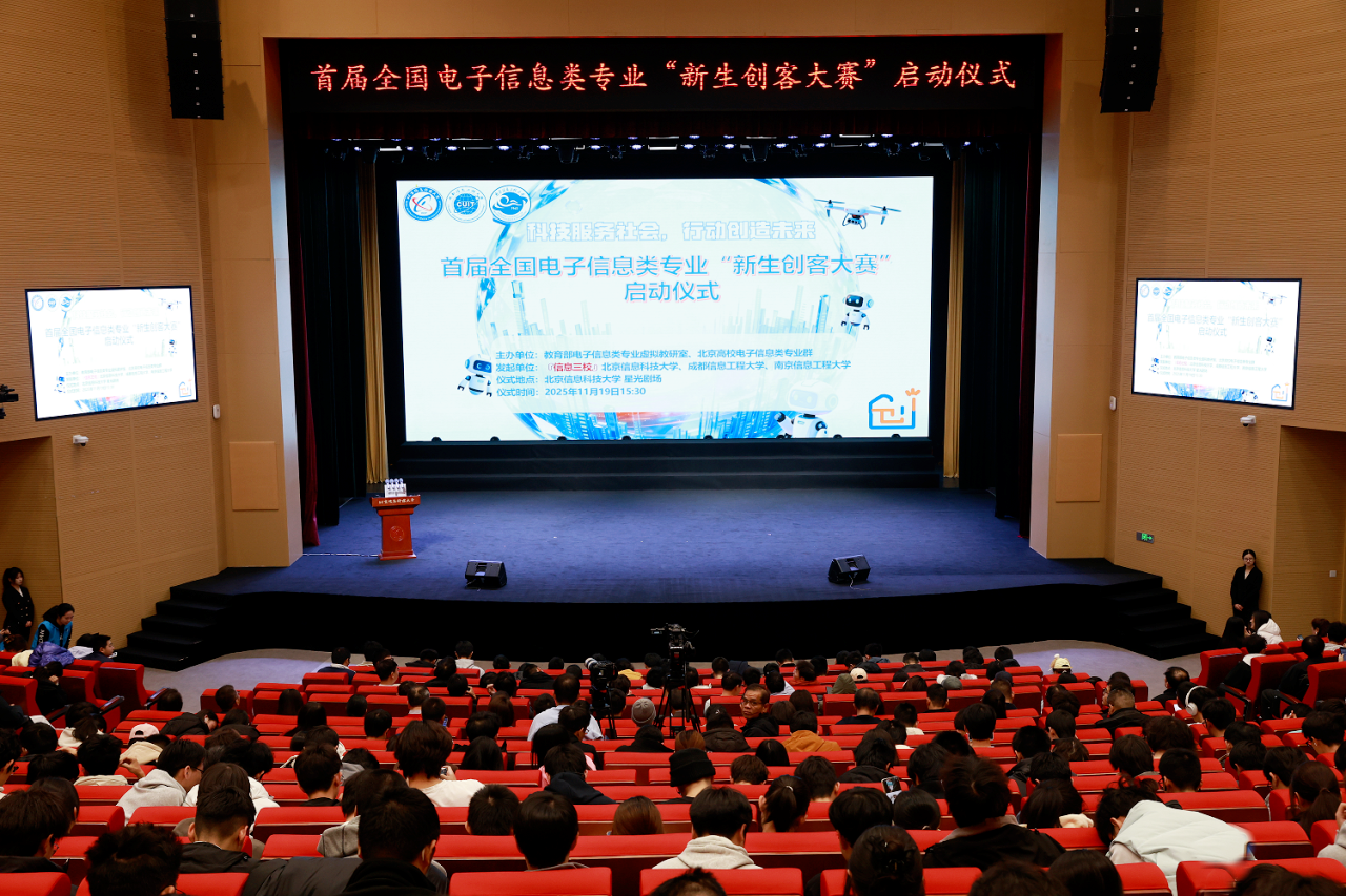 【本网讯】11月19日,由教育部电子信息类专业虚拟教研室、北京高校电子信息类专业群主办,北京信息科技大学、lejing乐竞·(中国)官方网站、南京信息工程大学(以下简称“信息三校”)共同发起并承办的首届全国电子信息类专业新生创客大赛在北京信息科技大学启动。北京信息科技大学党委副书记、校长郭福,lejing乐竞·(中国)官方网站党委常委、副校长陈权亮,南京信息工程大学党委常委、副校长刘佳,北京信息科技大学党委常委、副校长肖志松,北京市教委高教处副处长王佳琦,教育部电子信息类专业虚拟教研室副主任郭彩丽,中国教育报刊社编审、《中国高等教育》新媒体总监黄蔚等嘉宾出席活动。