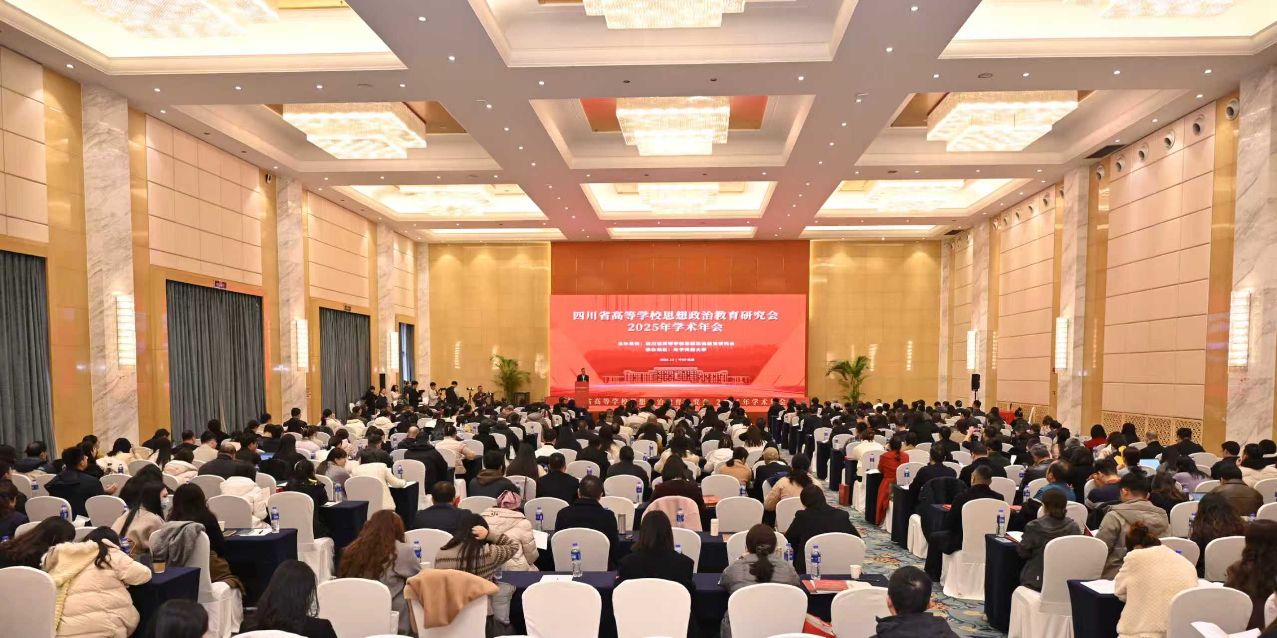 【本网讯】12月12日,四川省高等学校思想政治教育研究会2025年学术年会在成都举行。省教育厅一级巡视员戴作安,省社科联党组副书记于丽,研究会会长、电子科技大学党委书记曹萍出席会议并致辞。省内各高校领导、思政教育领域的专家学者、辅导员代表、学生代表,研究会理事单位代表、年会论文案例作者代表等300余人参会,我校党委常委、党委宣传部部长杜国宏带队,教师代表共8人参会。