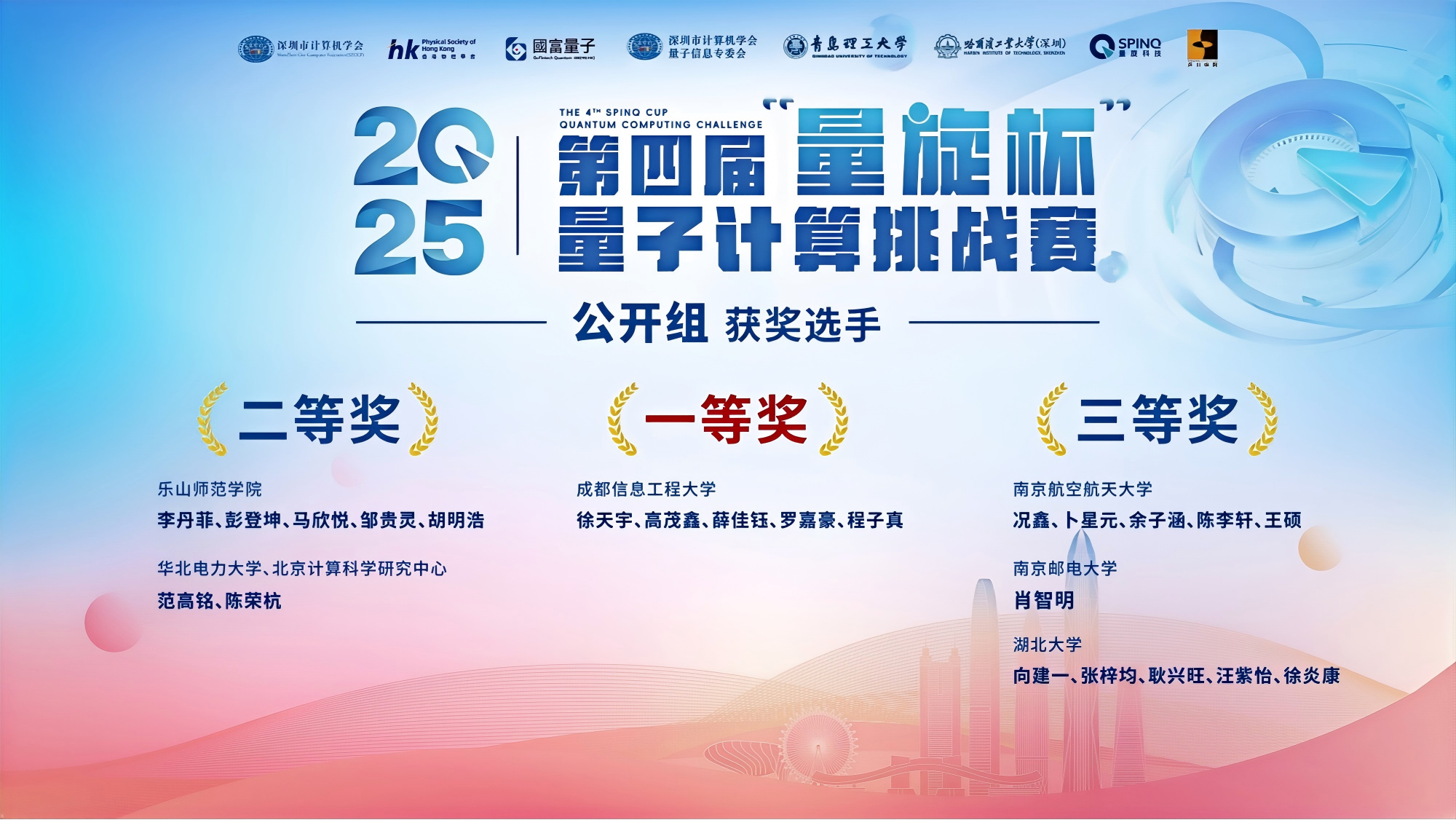 【本网讯】近日,第四届“量旋杯”量子计算挑战赛颁奖仪式在深圳南山隆重举行。在竞争激烈的公开组中,我校参赛团队凭借出色的方案设计与技术落地能力,荣获一等奖,充分展现了我校在量子计算领域的扎实功底与创新活力。