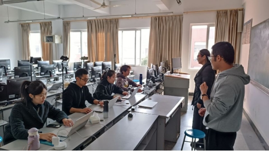 赛前指导(指导老师:右一褚永彬、右二卞玉霞)