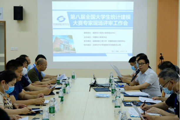 【本网讯】7月16日,由国家统计局统计教育培训中心指导,中国统计教育学会、教育部高等学校统计学类专业教学指导委员会、全国应用统计专业学位研究生教育指导委员会联合主办,lejing乐竞·(中国)官方网站和中国政府统计研究中心承办的2022年(第八届)全国大学生统计建模大赛现场评审会在我校龙泉校区经管实验中心顺利举行。评审委员会成员及20余位国内“双一流”大学等的统计学界专家、教授参加了此次评审会。国家统计局教育培训中心何继庆处长参加评审会并致辞,我校副校长于世祥、统计学院院领导和部分师生参加了评审会开幕式,开幕式由统计学院院长李勇主持。