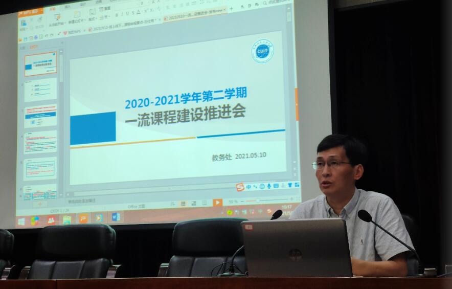 【本网讯】5月10日下午,学校在航空港校区行政楼一会议室召开一流本科课程建设推进会。教务处处长方睿、副处长彭静,各教学单位教学副院长(副主任)、省级一流本科课程负责人、省级精品在线开放课程负责人、虚拟仿真实验教学中心(含筹建)负责人、对一流本科课程建设感兴趣的其他老师参加会议。