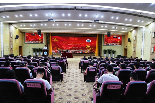 【本网讯】4月29日晚,学校在航空港校区国际会议厅举办“‘石榴籽’心向党  学‘四史’ 担使命”为主题的学习教育活动,邀请了控制工程学院党委书记王嵩作了题为“全民抗战中的中华民族共同体意识觉醒和升华”的讲座,内派教师吕艳、学校“石榴籽”工作室全体成员航空港校区各学院少数民族学生代表200余人参加活动。讲座由党委学生工作部副部长陈智勇主持。