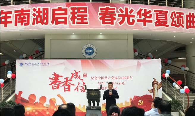 仪式上,图书馆袁纳宇老师还代表图书馆介绍并发布了“书香成信”文化推广年度活动。并表示,在学校党委的领导下,在党委宣传部、学生工作部、校团委、各学院及学校各相关部门的通力合作下,“书香成信”一定会取得更多更好的成绩。2021年,是中国共产党建党100周年,“书香成信”文化推广活动,将以“苦难与荣光”为主题,开展一系列线上、线下活动,贯穿全年。具体活动时间及主题,将在图书馆网站、微信、电子大屏和宣传栏中展示。