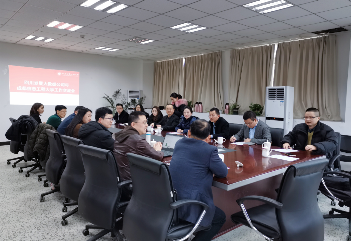 【本网讯】12月26日上午,四川发展大数据公司董事长、总经理干瑜静一行八人到我校工作交流。学校科技处副处长宋雪茜、计算机学院院长吴锡、网络空间安全学院院长陈麟、统计学院副院长金明以及相关科研团队教师参加了会议,会议由吴锡主持。