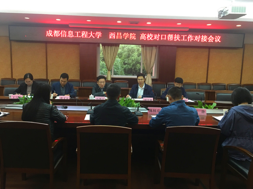 【本网讯】11月5日上午,西昌学院副院长胡金朝一行4人来校对接对口帮扶工作并开展座谈交流。学校党委副书记马洪江,党委组织部、教务处、研究生处、科技处、人事处有关负责人参加了座谈,座谈会由党委组织部部长董一平主持。