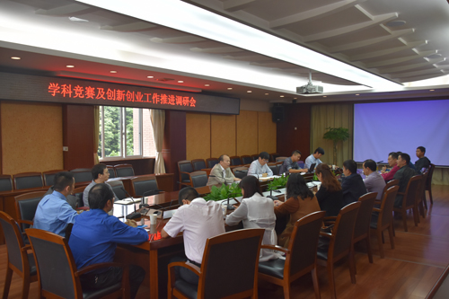 【本网讯】9月29日上午,学校在行政楼第七会议室召开了“学科竞赛及创新创业教育工作推进调研会”,何建新副校长,教务处、研究生处、计划财务处、校团委等部门负责人,各二级教学单位书记或院长参加了会议,会议由教务处处长方睿主持。