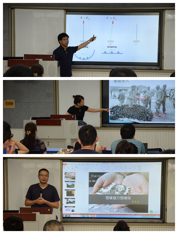 竞赛示范环节中,孙沙岚老师从课程亮点设计、图片选取意义、学生互动安排以及知识点串联技巧等多个方面进行了详细介绍;胡茶根老师则完整演示了整个参赛的教学过程,结合生动的教具,将生硬的工科理论深入浅出地剖析化解;毕务忠老师以竞赛态度的重要性为切入点,结合选题艺术、脑洞大开的举例、有效的教案设计等多角度,将自己参加校内外教学竞赛的经验做了分享。