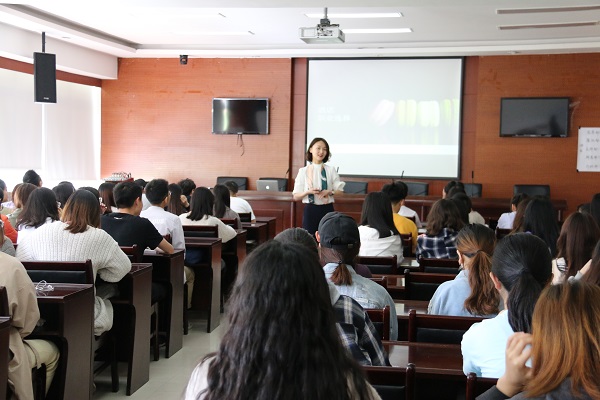 龚燕用活泼生动的语言和丰富的视频资源介绍了自己在酒店业的职业生涯发展历程,通过自身在酒店业中多年的经历和感受向同学们详细讲解了酒店员工的职业生涯规划,指出进入职场要拥有持之以恒的耐力,同时具备热情、好学、团队合作的能力。她通过游戏的方式给同学们介绍了酒店的组织结构,和酒店各部门功能、职责以及实习生要求,并给同学们给出了中肯的职业建议。