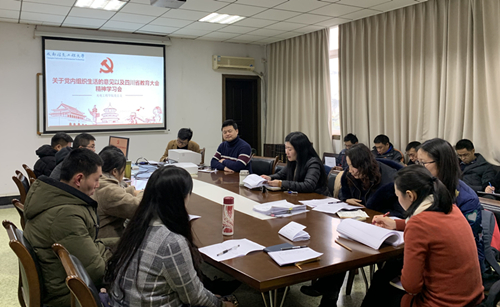 【本网讯】1月2日,光电工程学院党总支组织全体党员教师在信息楼312会议室召开了贯彻四川省教育大会精神专题学习会。会议由学院党总支书记王嵩主持。