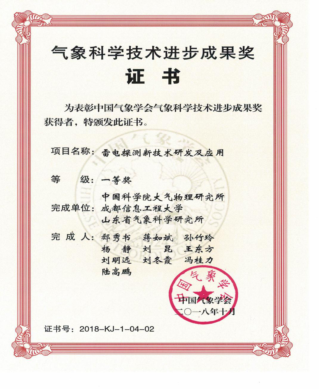 【本网讯】近日,我校作为第二完成单位,与中国科学院大气物理研究所、山东省气象科学院研究所共同完成的“雷电探测新技术研发及应用” 项目获得2018年气象科学技术进步成果奖一等奖,受到中国气象局的表彰。