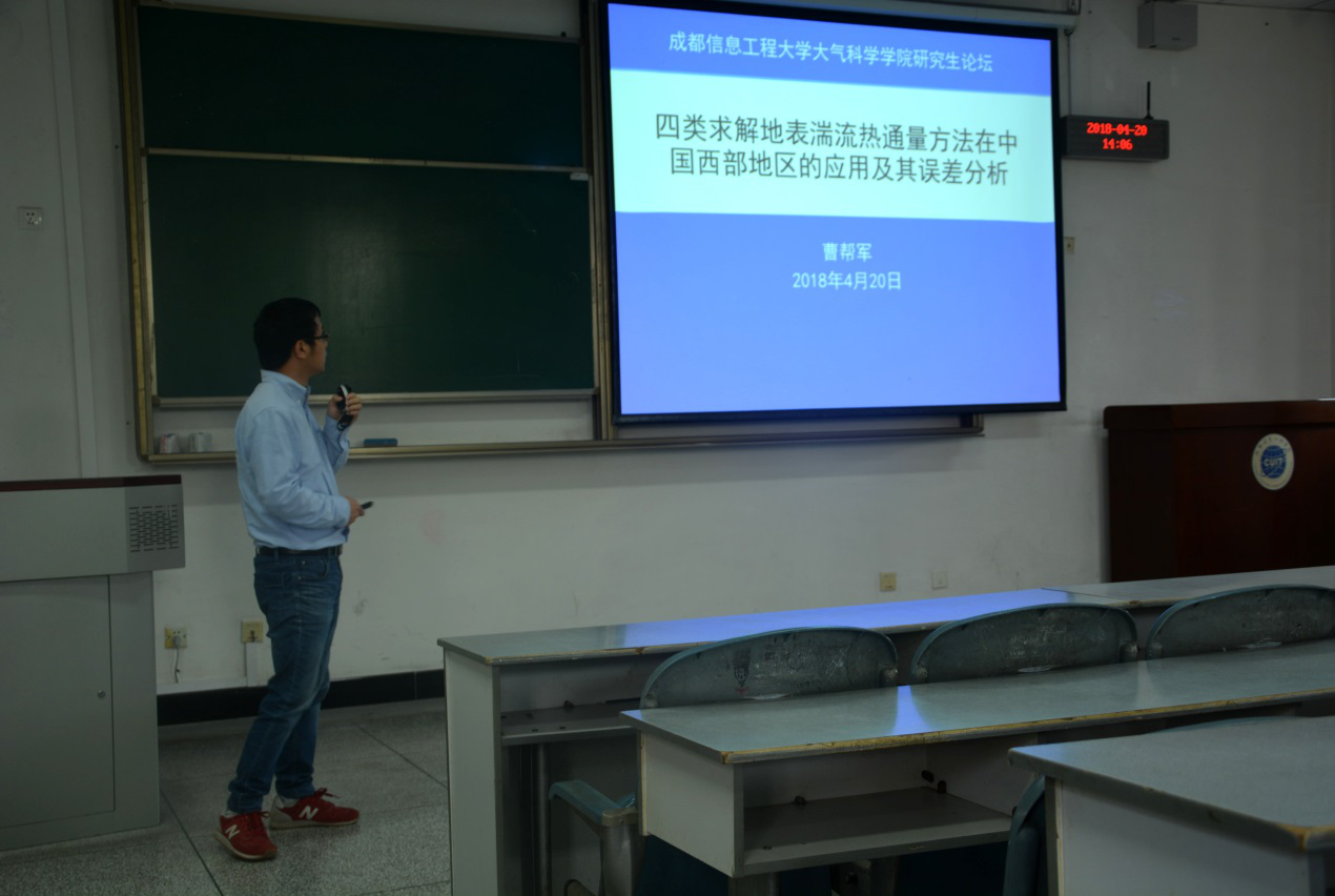 【本网讯】4月20日下午,大气科学学院第三十五期研究生论坛在1301教室举行。大气科学学院博士曹帮军,研究生何莉阳、文仕豪、张晗、蒋婉婷分别作学术报告。百余位大气科学学院研究生参加此次论坛。