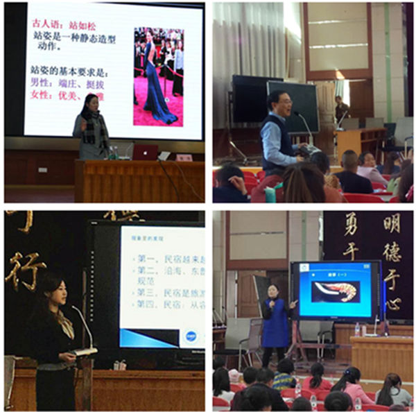 我校管理学院承担此次培训的具体教学任务。在院长黄萍的带领下,管理学院博士团队采取集中授课与现场指导相结合的方式,从理论、操作、实践等层面为学员讲解现代礼仪、智慧旅游服务、乡村民宿、乡村旅游与新农村建设、乡村旅游产品策划等内容。