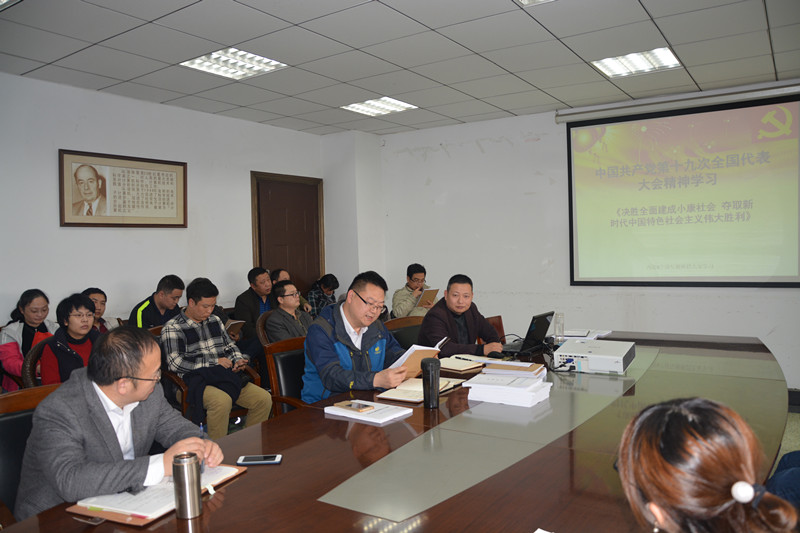 教工党支部书记林细俤带领全体教职工学习主题为《决胜全面建成小康社会 夺取新时代中国特色社会主义伟大胜利》的十九大会议精神PPT,他分别从大会主题、一个初心、十方面历史成就、两个重大判断、习近平新时代中国特色社会主义思想和基本方略等多个方面对十九大报告进行了学习。 林细俤说,习近平总书记所作的报告,高举旗帜、立论定向,把握大势、总揽全局,充满了中国共产党人的使命担当和民生情怀,是党面向未来、面向世界的政治宣言。十九大的报告作出了“中国特色社会主义进入新时代”的重大判断,提出了具有全局性、战略性、前瞻性的行动纲领,具有划时代的里程碑意义。