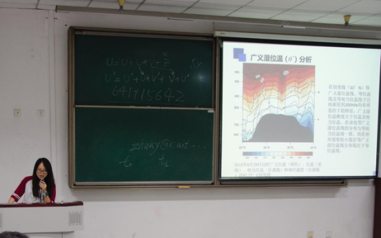 【本网讯】5月21日晚,大气科学学院第二十二期研究生论坛在1301教室举行。大气科学学院讲师杨泽粟,研究生陈佳、刘恒、谢慧琳受邀作学术报告。学院部分老师及研究生参加了此次论坛。