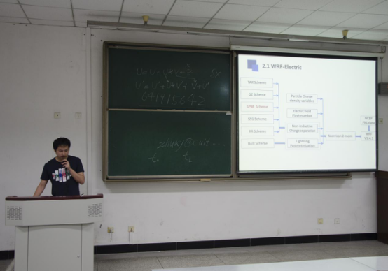 刘恒作了题为《雷暴天气电过程的数值模拟研究》的报告。他在WRF中尺度模式的基础上,引入起电和放电的物理过程,对雷暴天气过程进行模拟,研究云内微物理过程与电荷结构的联系,以及对雷电过程的影响。研究表明,雷暴云的起电、放电过程与云的动力、微物理过程的发展和演变紧密相连,云中水成物粒子大小与空间分布的差异会造成起电过程产生差别,进而导致雷暴云空间电荷数值及结构的表现形式不同,从而影响最终的放电过程。