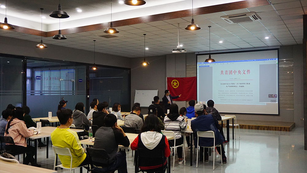 会上,全体学生干部重温了入团仪式,学习了团史、团情、团章以及《共青团中央关于印发<中国共产主义青年团基层组织“三会两制一课”实施细则(试行)>的通知》和《关于新形势下推进从严治团的规定》,观看了系列纪录片《追寻习近平总书记的初心》,并围绕“合格的共青团员的标准”“如何在青年种深入推行‘一学一做’”以及“切实推进共青团改革”等议题展开了热烈讨论。