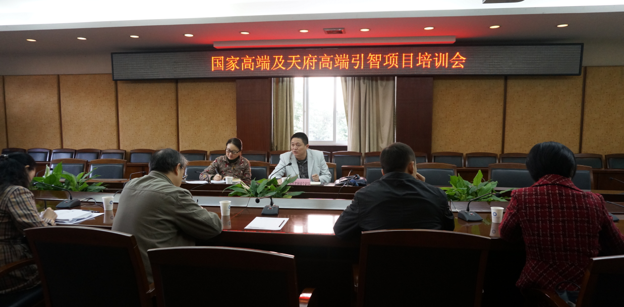 【本网讯】10月31日上午,四川省外国专家局引智管理处副调研员陈刚在学校第七会议室做关于申报国家高端引智项目、天府高端引智项目及四川省常规引智项目的培训会,软件工程学院、信息安全工程学院、管理学院、电子工程学院已申报引智项目的负责人及相关教师参加培训会,会议由国际交流与合作处处长段黔冰主持。