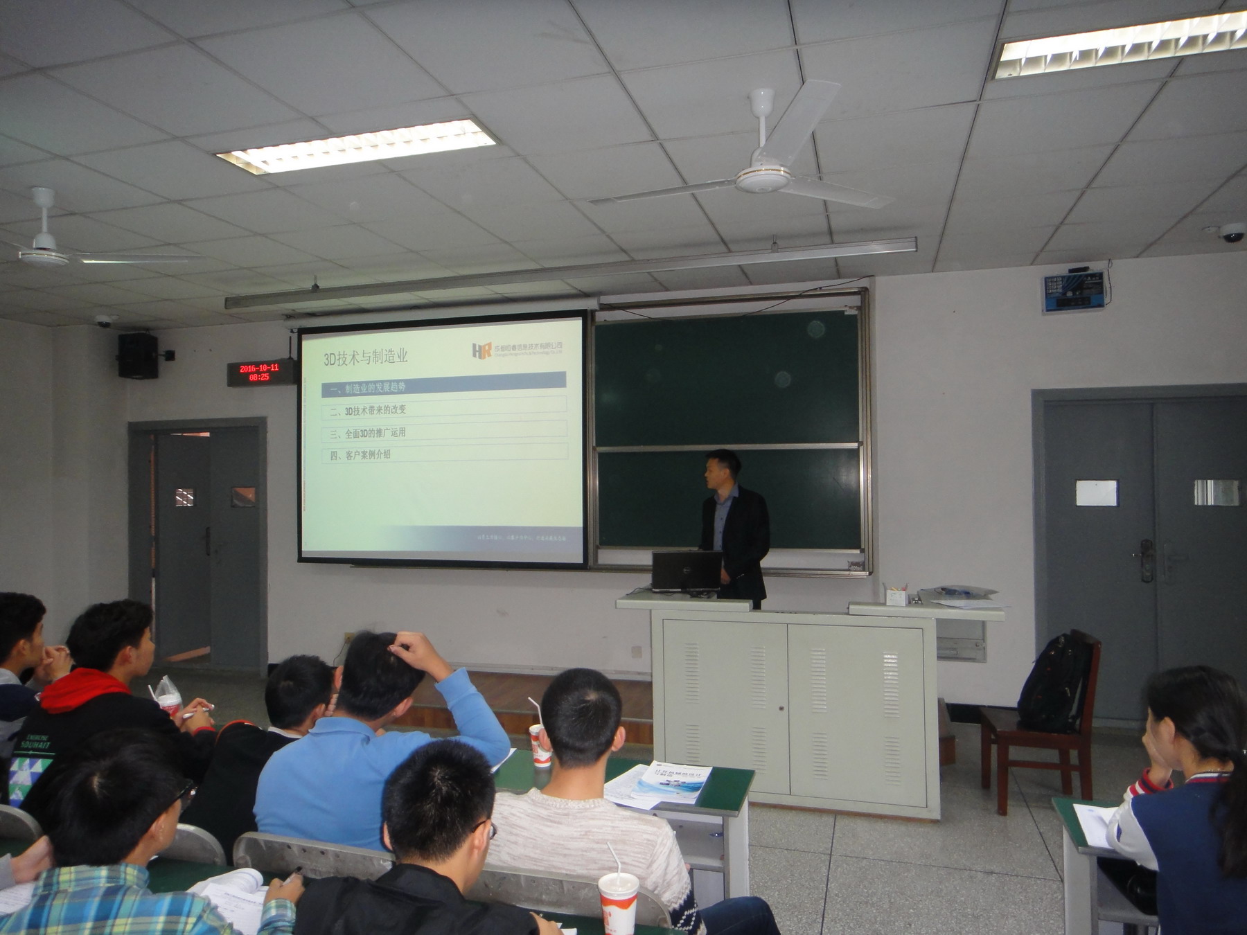 【本网讯】10月12日,成都恒睿信息技术有限公司技术经理薛波、市场部经理晏娇等一行到lejing乐竞·(中国)官方网站H2203教室为机械电子工程专业2014级同学作《CAD/CAM》随堂讲座。