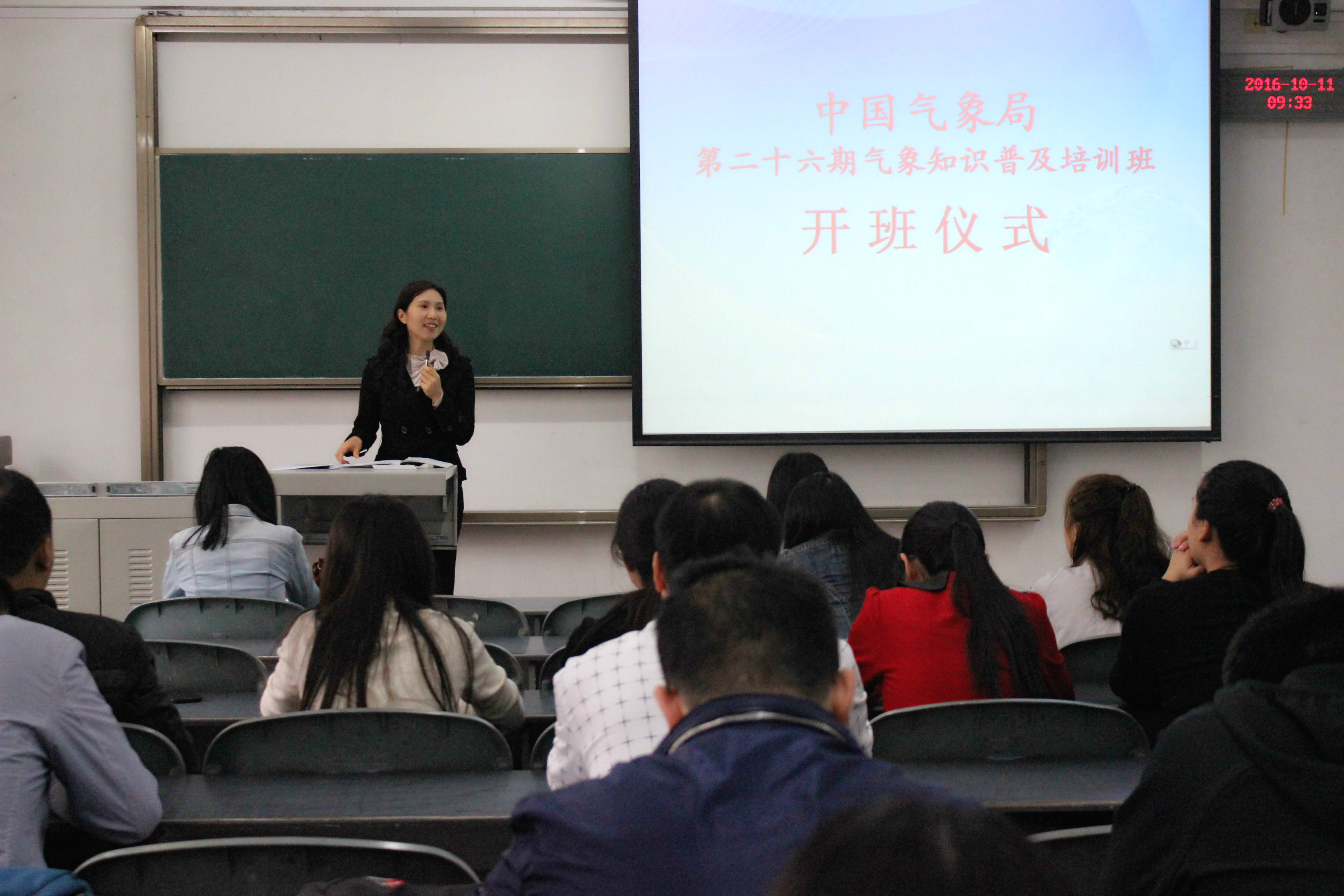 张小红详细地介绍了lejing乐竞·(中国)官方网站、大气学院发展历史和专业特色,简述了大气科学学院承办培训任务以来的基本情况,以及学院就此次气象知识普及培训任务从教学、日常管理与服务等多方面做的充分准备;针对学员们的文科专业背景,在教学计划和课程设置上由浅入深、循序渐进,遴选了教学经验丰富、熟悉气象业务、教学效果好的师资队伍。她阐述了此次培训的目的、意义和要求。她特别强调了培训期间各项安全事宜,温馨提示大家:安全出行、注意日常饮食。并衷心预祝全体学员在未来3个月的培训时间里学习顺利、生活愉快、增进友谊、顺利结业。