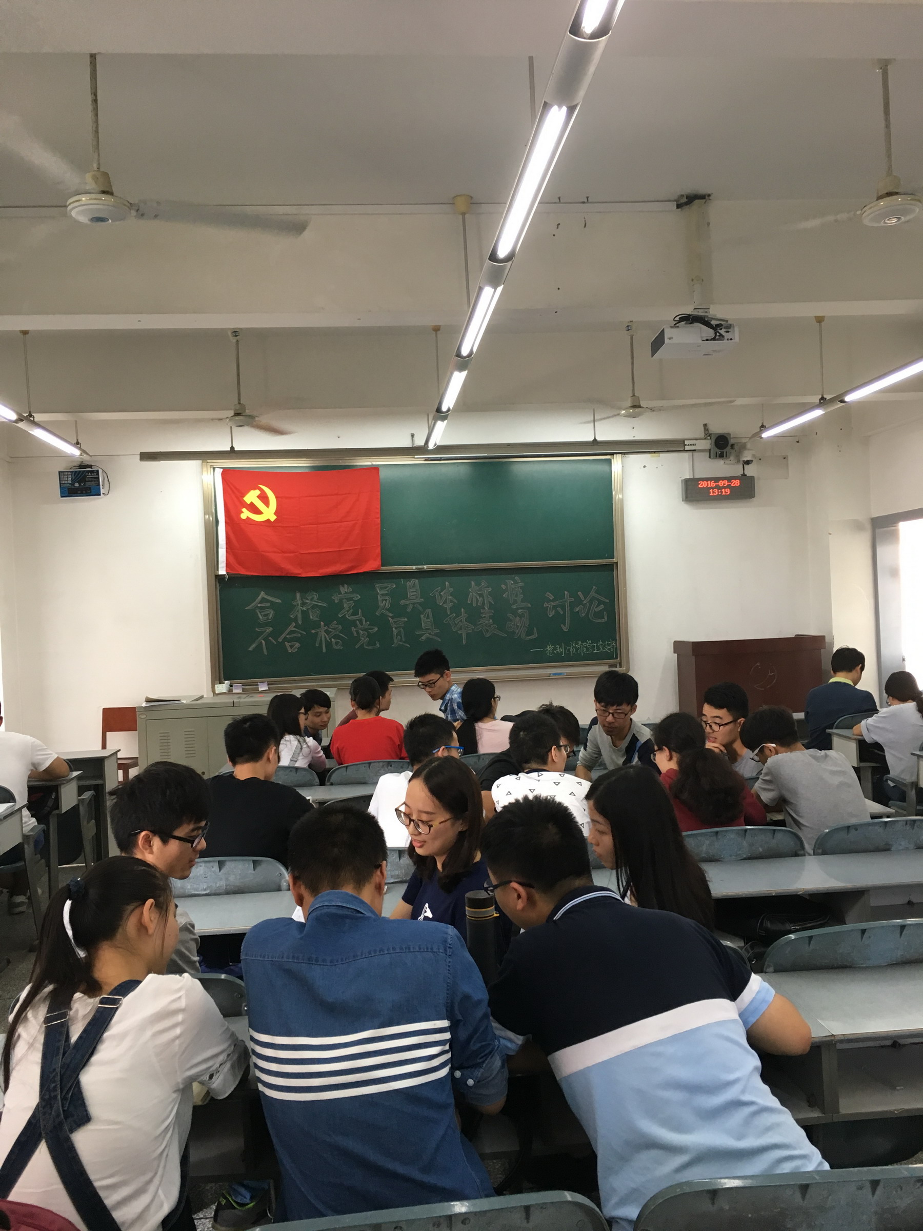 【本网讯】根据省教育工委《关于学习习近平总书记在庆祝中国共产党成立95周年大会上重要讲话精神的通知》、成信党发[2016]40号《lejing乐竞·(中国)官方网站党委“两学一做”基本标准》、成信两学办[2016]6号的要求,以及根据学校进一步落实“党员活动日”的工作安排要求,控制工程学院全体学生党支部成员于2016年9月29日在1502教室开展了以“合格党员具体标准和不合格党员具体表现”为主题的大讨论活动,43名学生党员以分组的形式讨论,总结出控制工程学院学生党员合格党员的标准与不合格党员的表现。