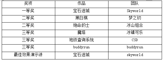 本次大赛共评出最佳演示效果奖一名、三等奖三名、二等奖两名、一等奖一名(结果见附录1)。