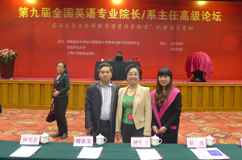 【本网讯】 3月19日-22日,第九届全国英语专业院长/系主任高级论坛在昆明召开。此次会议由教育部高等学校外国语言文学类专业教学指导委员会、上海外语教育出版社和云南师范大学外国语学院承办。我院外国语学院院长康莲萍、副院长黄驰、英语专业教研室主任杨云安出席会议。