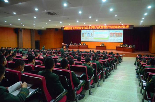 [本网讯]10月30日晚7:20,文化艺术学院辩论队应邀到武警警官学院参加“辩论对抗赛”。武警警官学院远程和继续教育处处长王晓东、科研部处长邓作强、人文社会科学系主任范晓明、副主任岳缠,以及文化艺术学院党总支书记王子华、副院长廖思湄等500余人观看了对抗赛。