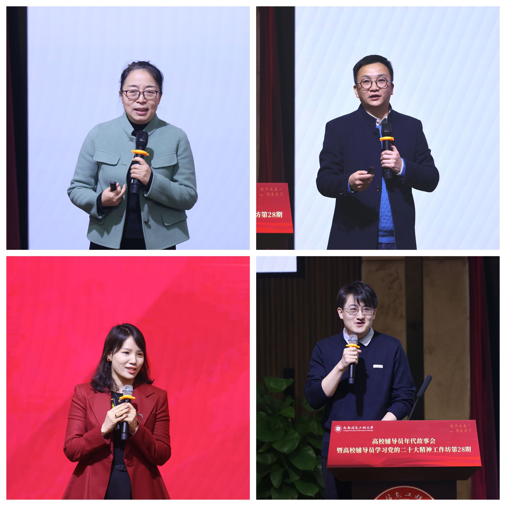 第四阶段由电子科技大学光电科学与工程学院党委副书记李毅主持。山东大学辅导员陈冠廷以“活出有结构的生命”为题,讲述了年轻辅导员从迷茫到坚定的成长历程。武汉大学金旻、华东理工大学高宇、四川财经职业学院胡桑等围绕“梦想与规划”展开对话,展现了新一代辅导员的朝气、思考与担当。