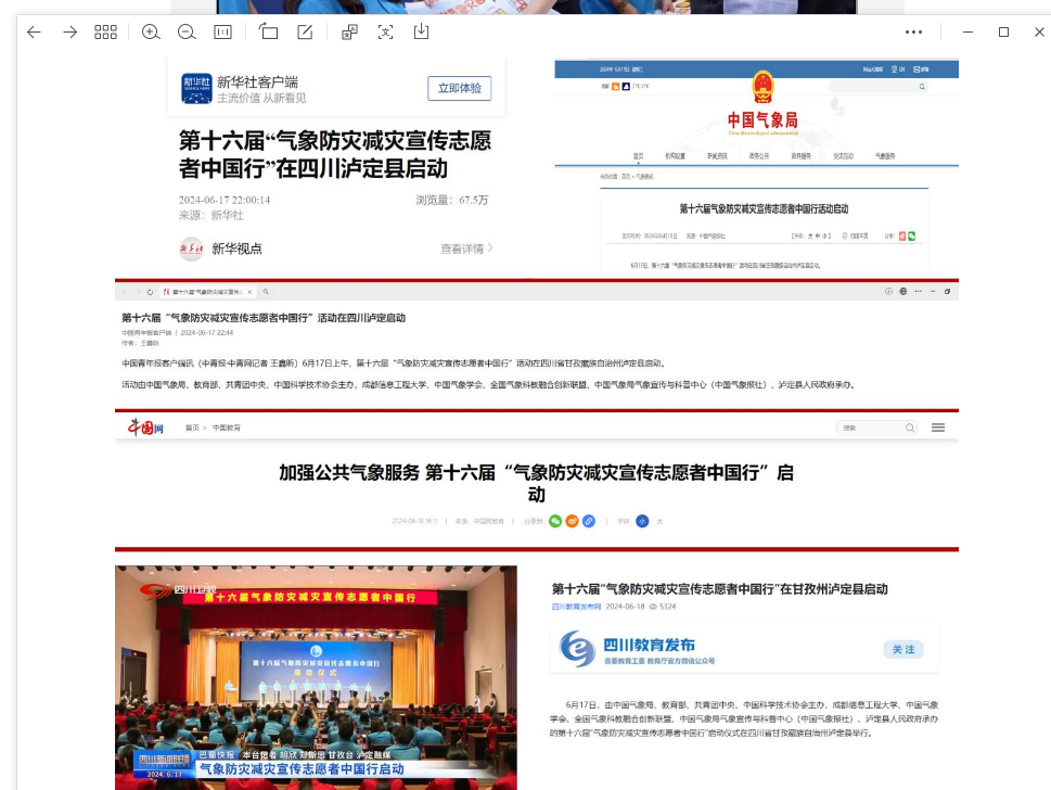 学校始终认真贯彻“四个服务”的根本要求,为气象现代化建设、公共气象服务、乡村振兴气象保障及气象防灾减灾知识普及做出积极贡献。本届活动以泸定桥为起点,志愿者们将“重走长征路”,奔赴全国各地传播气象科学知识,特别关注乡村地区的气象防灾减灾需求。与会领导嘉宾和志愿者分别前往社区、小学、乡村开展气象防灾减灾科普宣传,发放相关学习资料,并举办防灾减灾科普专题讲座,以科普助力乡村振兴。
