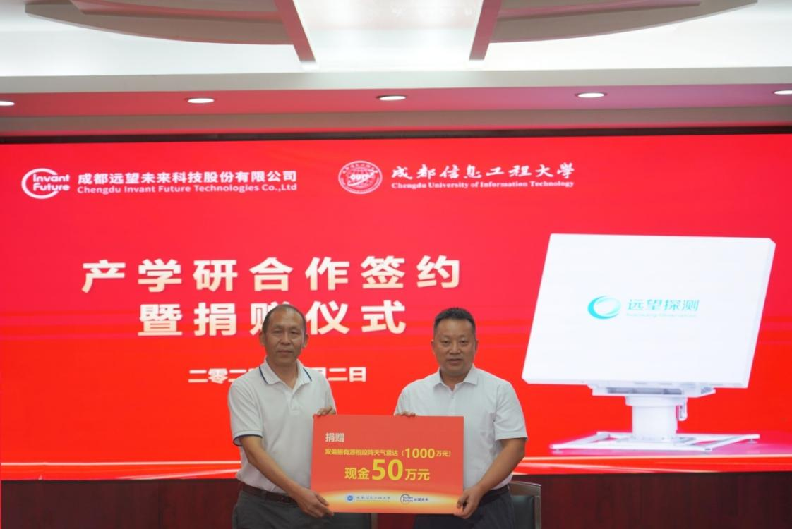 7月2日,学校与成都远望未来科技股份有限公司成功举行产学研合作签约暨捐赠仪式。远望未来科技捐赠大功率高精度X波段双偏振有源相控阵天气雷达(价值1000万元)及现金50万元,学校领导与公司董事长共同签署产学研合作协议并为“气象雷达创新研发中心”揭牌。双方将在技术研发、人才培养等方面深入合作,推动气象雷达领域科技进步和产业升级。远望未来科技董事长邓思华回顾了母校求学经历,并表达了对母校的深厚感情。学校党委书记沈火明对合作表示高度认可,期待双方取得丰硕成果。