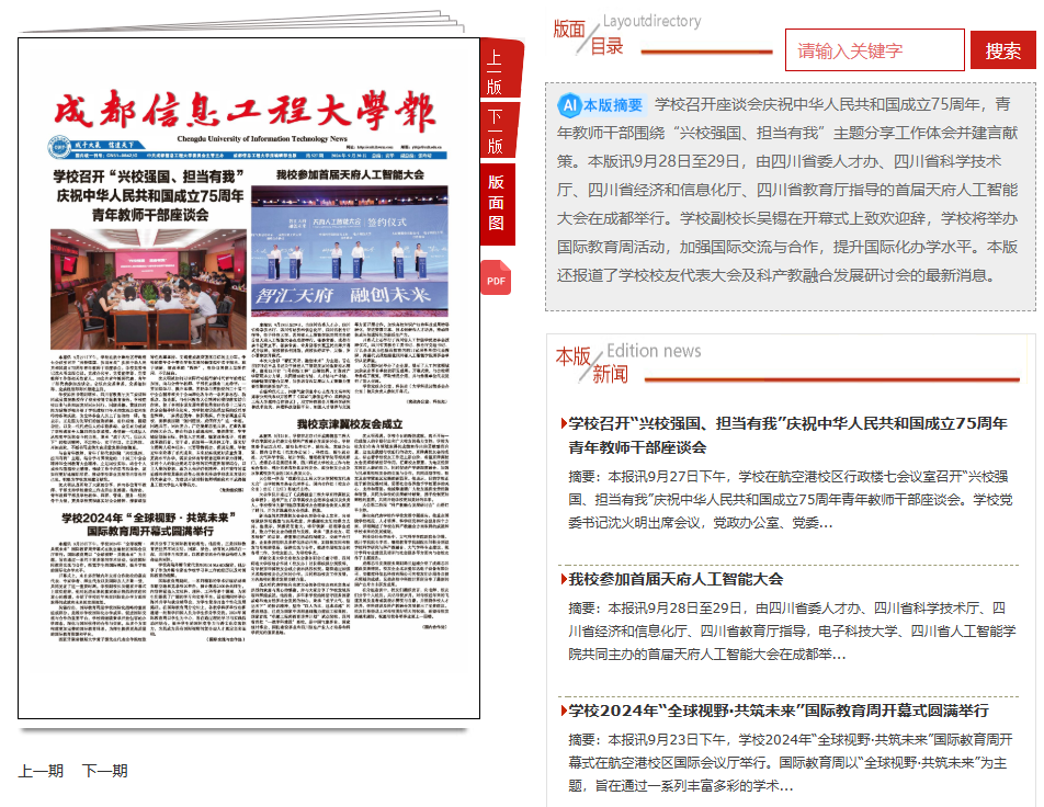 《lejing乐竞·(中国)官方网站报》坚持守正创新、精编严审,全年刊发12期(520—531期),刊登稿件290余篇,围绕学习贯彻习近平新时代中国特色社会主义思想主题教育、全国两会、党纪学习教育、党的二十届三中全会、全国教育大会、宪法宣传教育、网络安全宣传周、师德师风、研考指南、就业导航、青春榜样等20个思想理论和成信文化特色专版专栏。