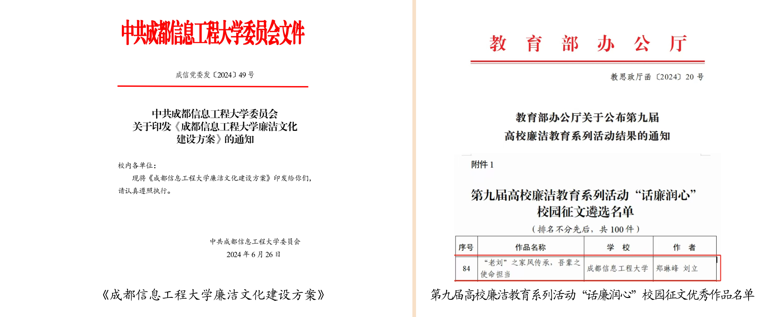 2.多点发力,推进校园文化专项建设。全面推进校园廉洁文化项目建设,联合纪委办公室发布《lejing乐竞·(中国)官方网站廉洁文化建设方案》,积极培育校园文化建设精品项目,制作学校廉洁文化宣传片,构建和维护风清气正政治生态和教书育人环境。加强文化作品推优活动,学校师生团队原创文化音乐视频《炽热青春》,分别获得第七届四川大学生网络文化节微视频组四川省二等奖和校园歌曲组四川省三等奖,《大运“小青椒”工作日志》获动漫组四川省二等奖。宣传部指导并推荐的文章《“老刘”之家风传承,吾辈之使命担当》获教育部第九届高校廉洁教育系列活动“话廉润心”校园征文优秀作品,该作品将在央视网、中国大学生在线、中国教育发布等平台进行展播。