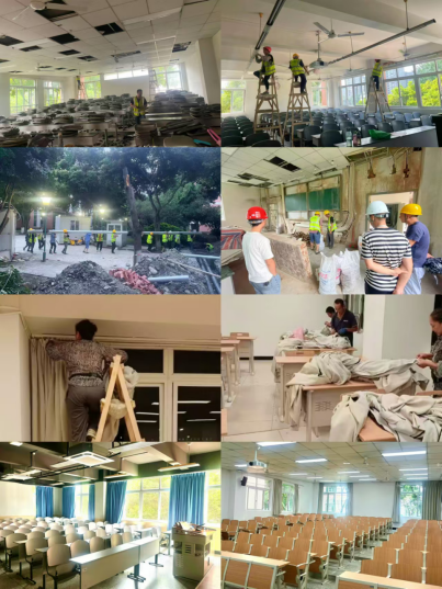 完成两校区260余间多媒体教室强弱电改造,更换教室课桌椅12098套及护眼灯4890组,清洗窗帘1763副,清洗玻璃4572.74㎡,改造龙泉二教厕所,提升了办学条件、改善了学习环境。全方位升级改造成信礼堂,进一步改善了举办学术研讨会议、学生文体活动等场所条件。成信礼堂自10月15日正式启用以来,成功保障了庆祝中华人民共和国成立75周年党史专题讲座等20余项大型活动。