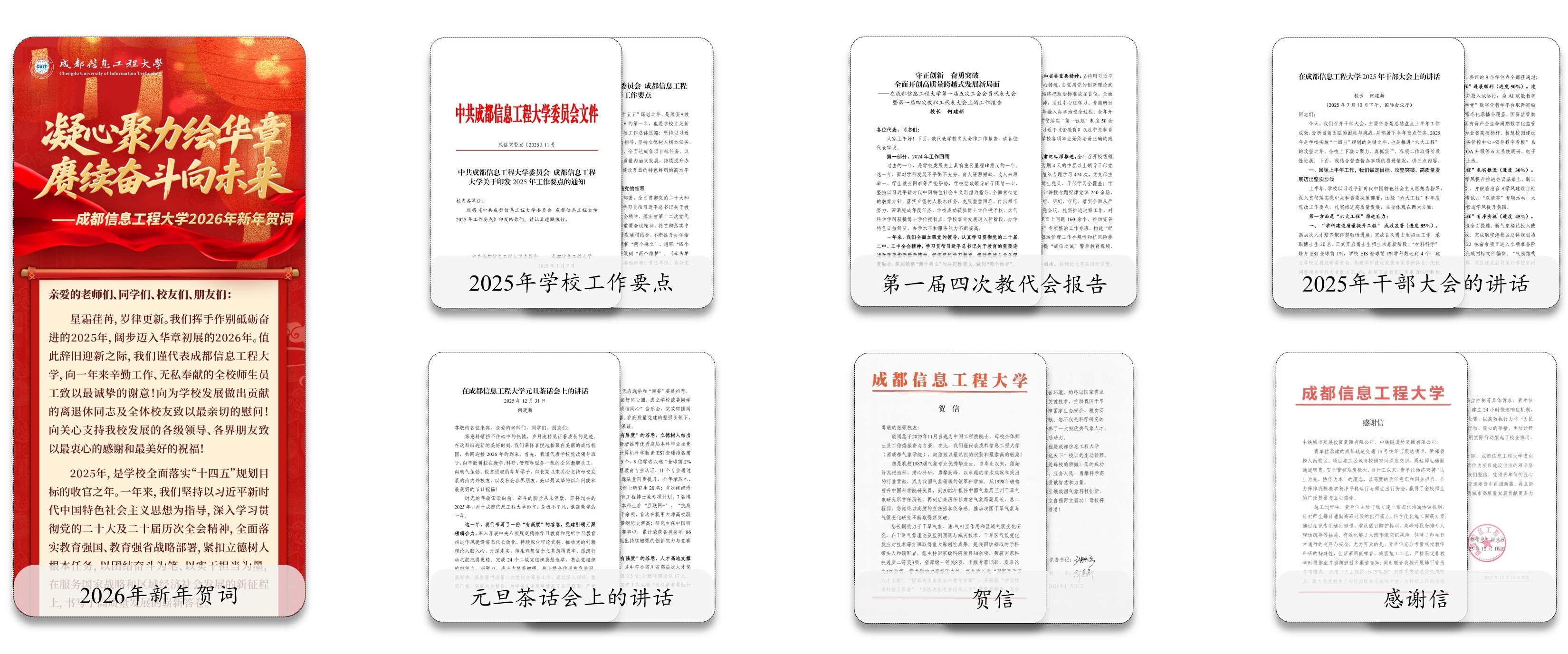 (一)高质量起草重要文稿。紧紧围绕学校“十四五”规划实施关键节点和“十五五”战略谋划,深入开展调研,准确把握学校发展方向和阶段性特征,全年高标准撰写各类工作报告、重要活动领导讲话、对外对内重要信函等重要文稿,为学校科学决策和改革发展提供了有力的文字支撑。