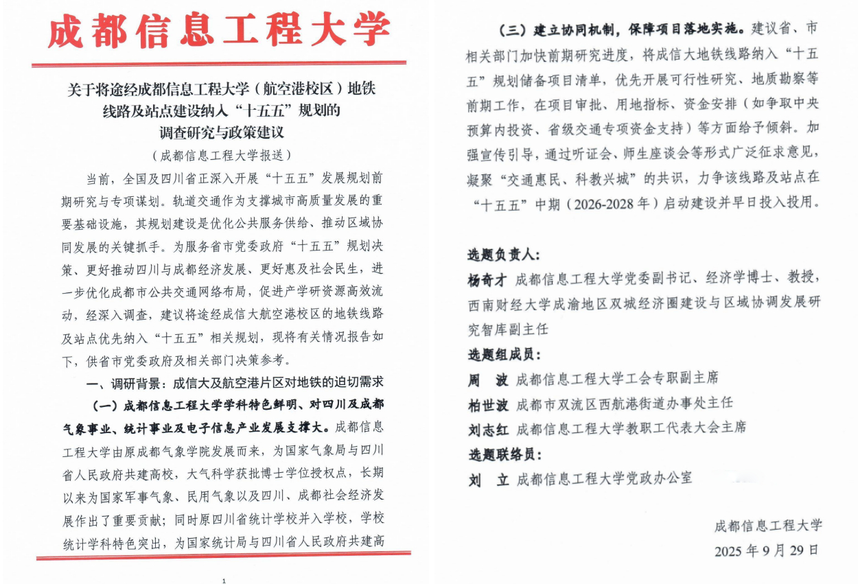 助力24名青年教职工子女入学入托,开设中考体考培训班、教职工子女暑期成长营,解决教职工的后顾之忧。对航空港校区地铁规划、建设问题建言献策。撰写政策咨询报告上报省委办公厅,组织校内相关部门拜访成都轨道集团,目前正委托在校省市两级人大代表、政协委员撰写提案,致力改善学校地铁交通状况。