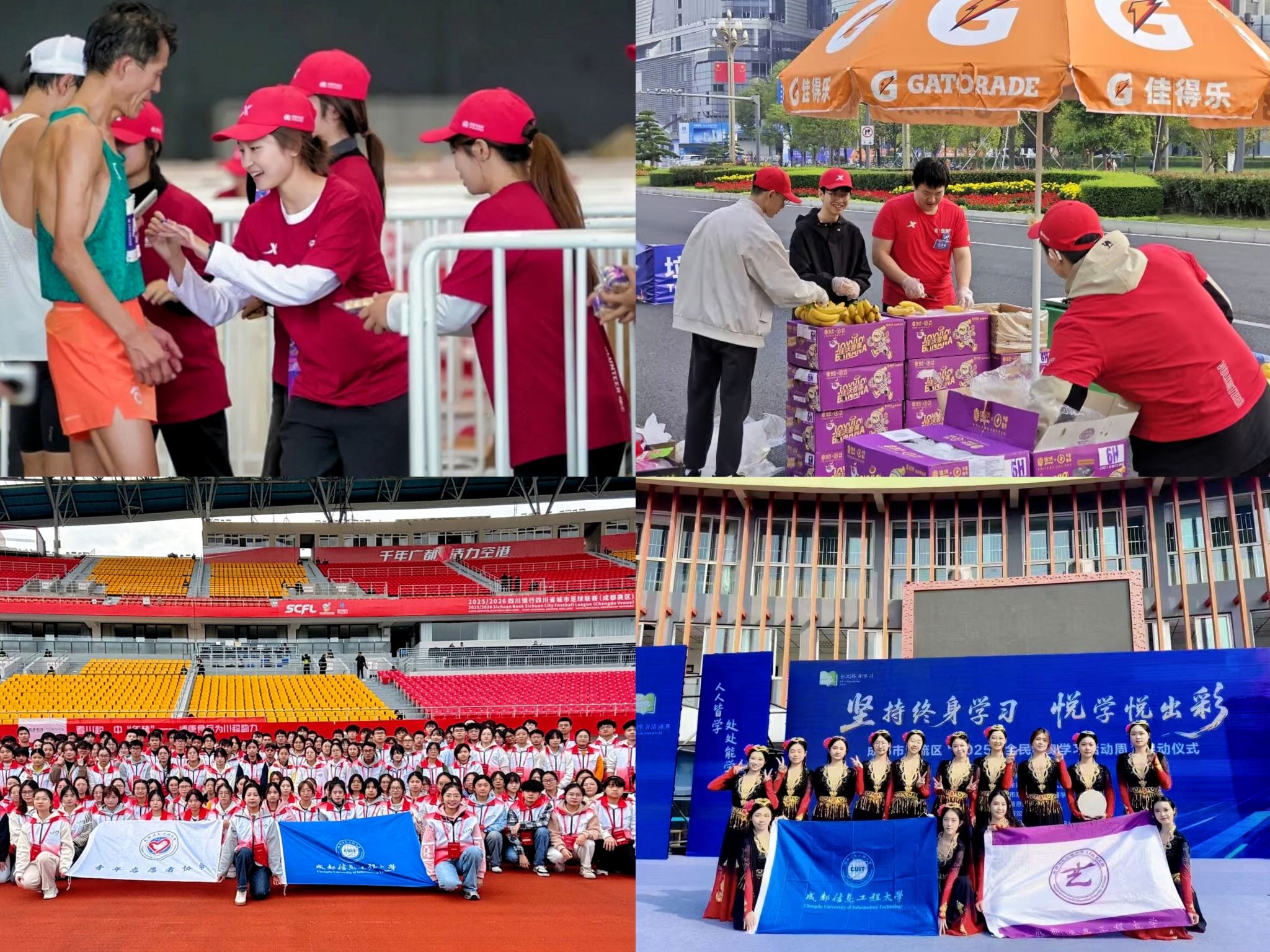 在成都马拉松、川超联赛等重大赛事,双流国际机场T1航站楼测试运营、全民学习周等惠民工程以及学校硕士研究生招生考试、校园马拉松等全校性重大任务中,校团委组织的志愿者队伍均实现了“零失误、零投诉”的可靠保障,以高度的责任感和细致的服务,切实担当起校内外重大活动“护航员”的职责。