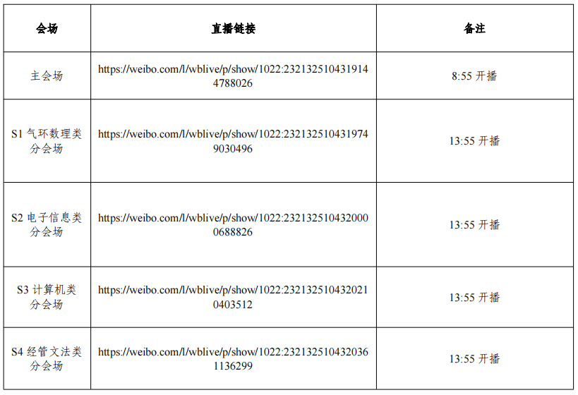 学科分论坛分组:S1气环数理类、S2电子信息类、S3计算机类、S4经管文法类