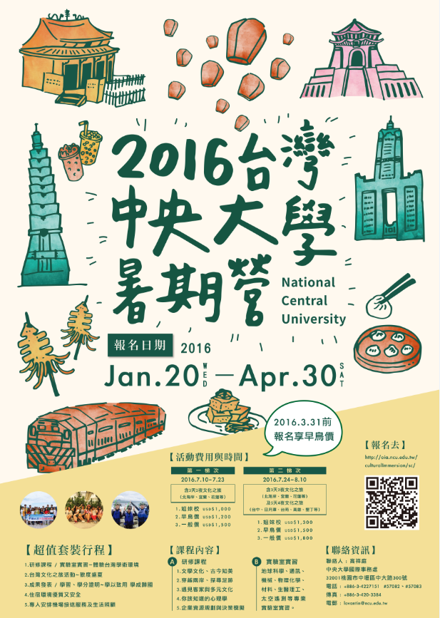 项目咨询:http://oia.ncu.edu.tw/culturalImmersion/sc/
