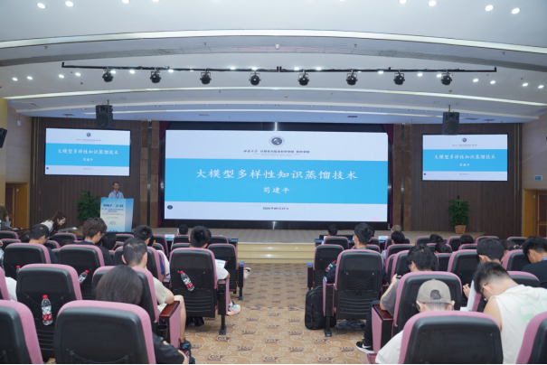 四位专家围绕人工智能前沿领域带来精彩分享:李晓黎教授深入探讨了大语言模型与时间序列分析的创新融合方法;苟建平教授系统阐述了基于多样性保持的大模型知识蒸馏技术;蔡林沁教授分享了虚拟学习环境中的人本多模态交互最新进展;黄源源副教授则展示了生成式模型在短临降雨预测中的创新应用。这些报告不仅展现了基础研究的学术深度,更体现了人工智能与自然语言处理技术在教育、气象等领域的广泛应用前景。各位专家的报告内容新颖、见解独到,引发了与会学者的热烈讨论,为相关领域的未来发展提供了重要启示。